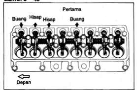 Saat posisi top 1 maka katup yang terbebas tidak tertekan poros nok adalah katup intake pada silinder 1 dan 2 sementara katup exhaust ada pada silinder 1 dan 3.
