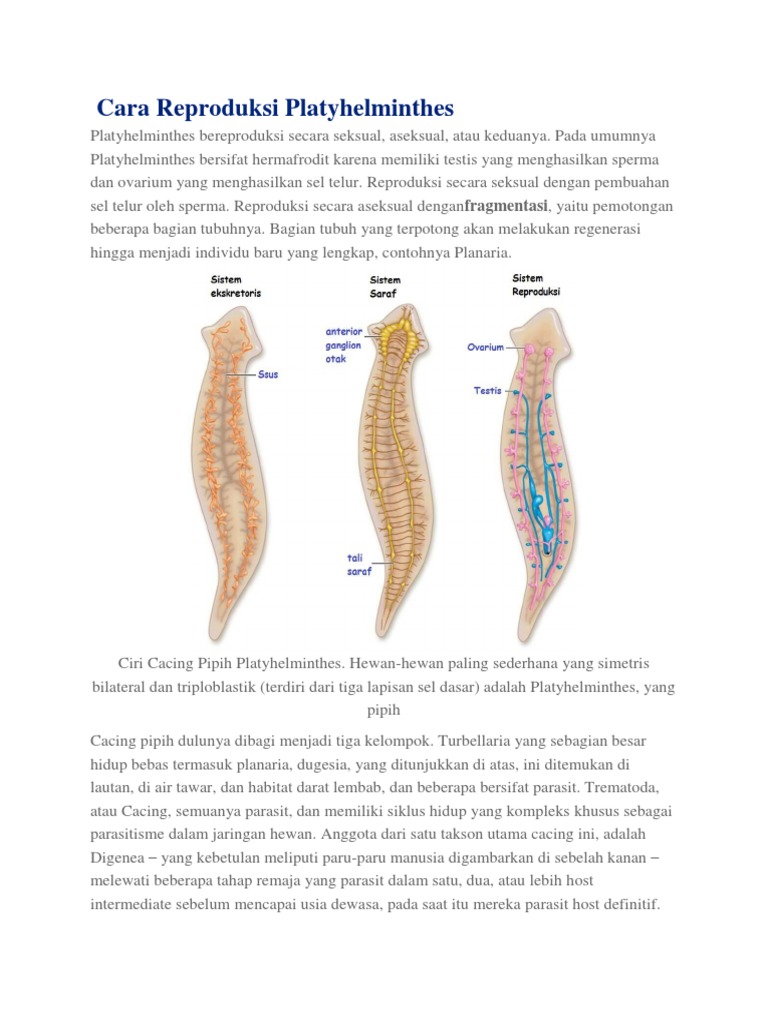 Mempunyai 2 alat kelamin pada satu tubuh. Saluran yang bercabang cabang dan berakhir pada sejumlah. Pengertian platyhelminthes platyhelminthes ini berasal dari bahasa yunani platy memiliki arti pipih serta helminthes artinya adalah cacing. Cacing pita adalah parasit internal dari kelas cestoda.