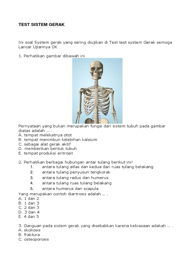 Alat Gerak Aktif Manusia Adalah A Rangka B Tulang C Sendi D Otot