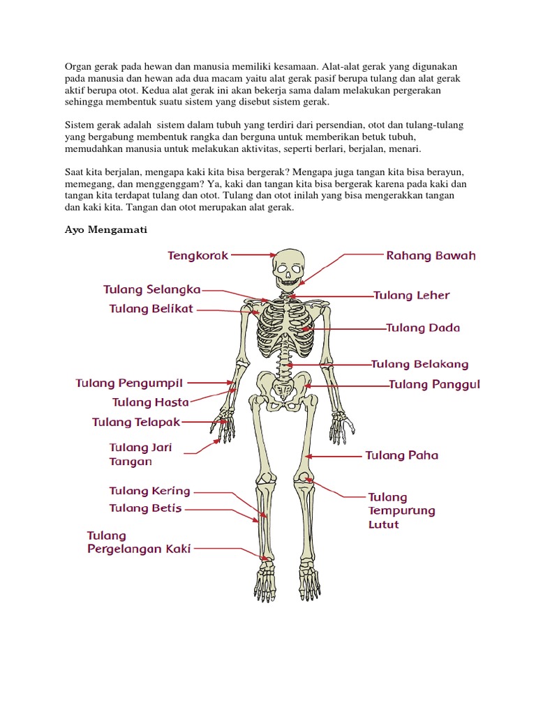 Sedangkan tulang merupakan jaringan ikat yang. Kedua alat gerak ini akan bekerja sama dalam melakukan pergerakan sehingga membentuk suatu sistem yang disebut sistem gerak. Hewan tidak memiliki akal sedangkan manusia memiliki akal. Alat alat gerak yang digunakan pada manusia dan hewan ada dua macam yaitu alat gerak pasif berupa tulang dan alat gerak aktif berupa otot.