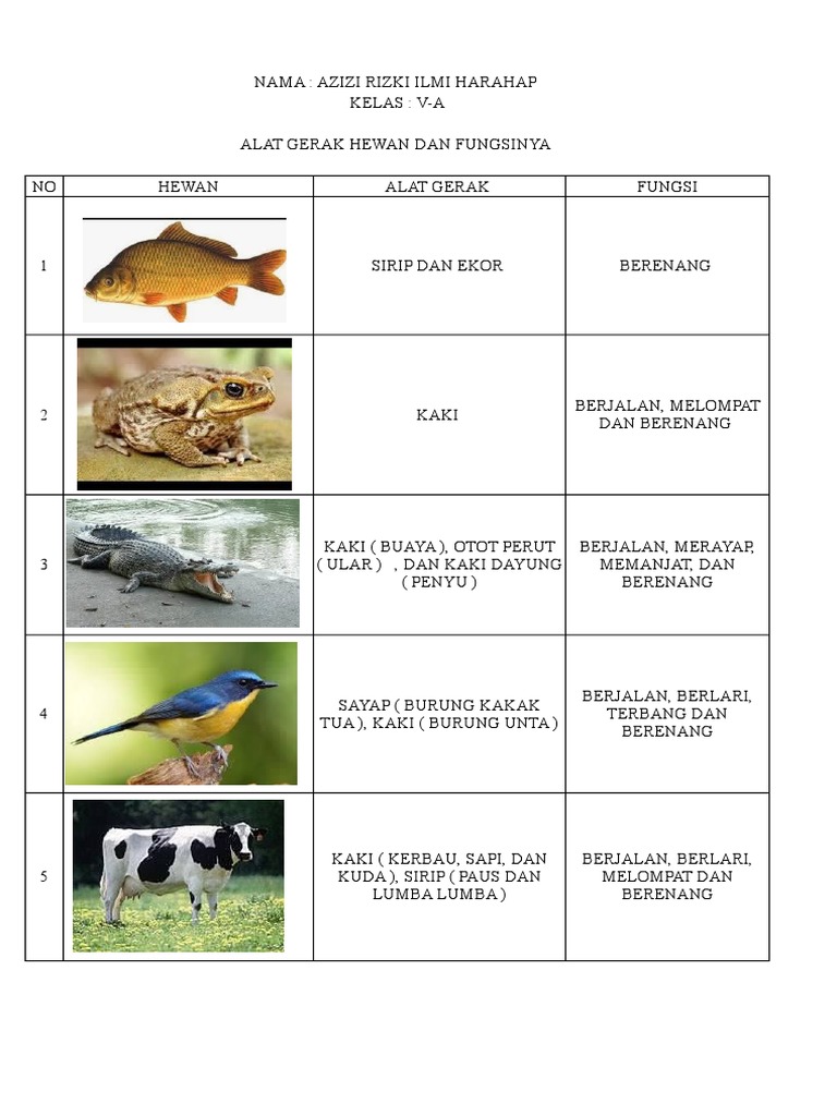 Katak memiliki dua organ gerak yaitu kaki dan tangan. Fungsi sirip yaitu membantu ikan berenang meluncur atau merangkak gerak maju berputar atau mempertahankan posisi tegak. Nama organ gerak pada ikan adalah sirip dan ekor. Karena tulang tidak dapat bergerak sendiri.