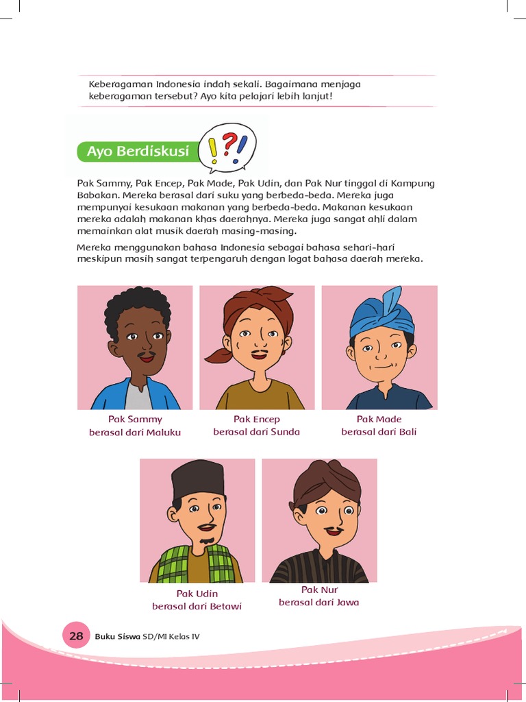Pembahasan soal kelas 4 sd mi pembelajaran 2 tema 1 subtema 1 keberagaman budaya bangsaku di buku paket tematik halaman 29.