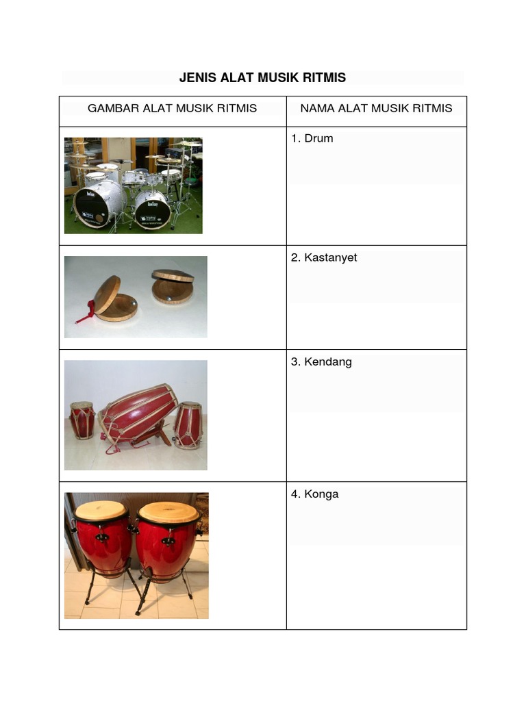 Alat musik ritmis gambar dan namanya. Alat musik konga sudah melalui beberapa perubahan baik dalam bentuk maupun bahan bahan yang digunakan. Berikut ini akan kami ulas berbagai macam dan contoh dari alat musik ritmis tradisional yang unik yang tesebar di berbagai daerah di dunia dan disertai asal daerahnya gambar serta cara memainkannya. Diperkirakan pada masa hindhu budha gamelan diperkenalkan kepada masyarakat jawa dan berkembang di kerajaan majapahit. Dari segi bentuk konga yang.