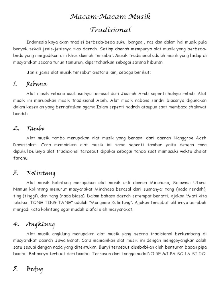 Setiap jenis alat musik tersebut memiliki ciri khasnya masing masing akan tetapi pada artikel yang kami buat kali ini akan menjelaskan tentang alat musik ritmis.