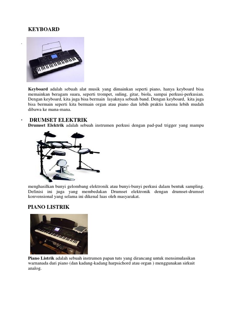 Contohnya seperti keyboard gitar listrik bass listrik dan piano listrik. Instrumen alat musik berdasarkan cara memainkan dan. Beberapa contoh alat musik elektrofon antara lain adalah keyboard gitar dan bass listrik eigenharp korg kaossilator turnable laser harp dan the reactable. Penutup alat musik berdasarkan sumber bunyi.