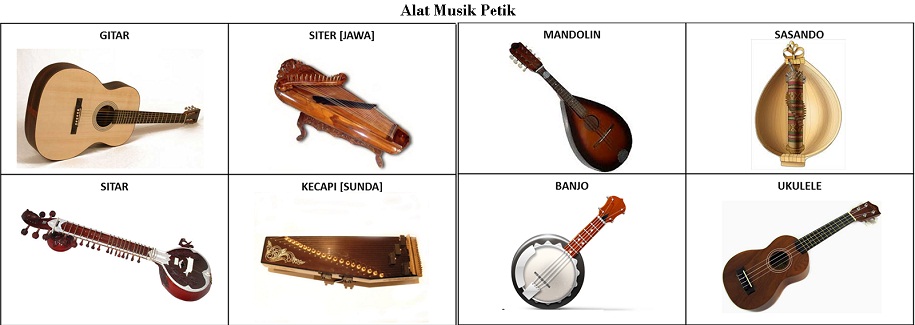 Contohnya adalah alat musik siter dari jawa tengah alat musik tersebut mungkin akan susah ditemukan di daerah papua atau di daerah lainnya. Seluruh orang di dunia ini pasti tidak asing lagi dengan alat musik petik yang satu ini. Secara umum contoh alat musik petik menggunakan dawai senar. Pada umumnya alat musik ini memilki senar yang biasa disebut dengan dawai.