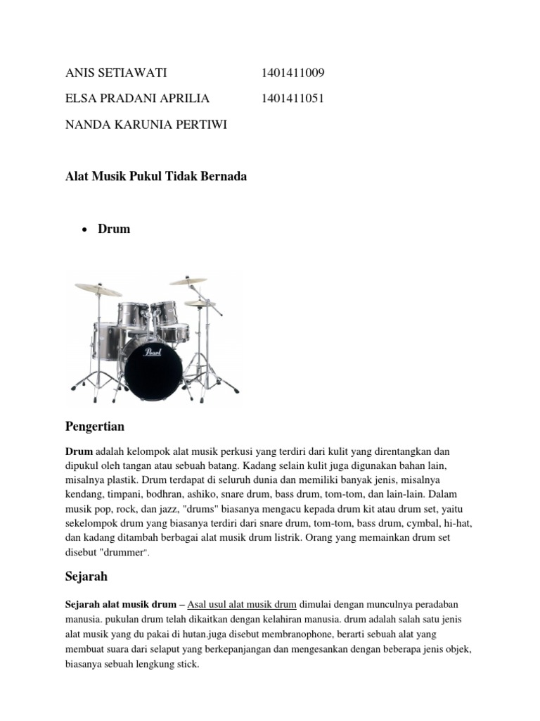 Alat musik yang tidak bernada disebut. Bagian saluran pencernaan mana yang ditunjukan oleh huruf b. Meski pun alat musik ritmis ini tidak bernada sehingga fungsinya lebih kepada menjaga ketraturan dari irama lagu. Alat musik pukul adalah alat musik yang cara memainkannya dengan memukul alat musik tersebut. Alat musik pukul tidak bernada bisanya disebut dengan alat musik ritmis atau ritme.