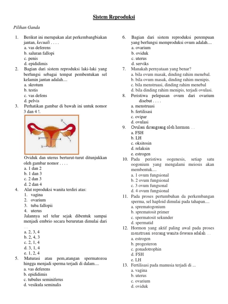 Terjawab alat reproduksi wanita terdiri atas 1 vagina 3 tuba falopi 2 ovarium 4 uterus jalannya sel telur sejak dibentuk sampai menjadi embrio secara berurutan dimulai dari a.