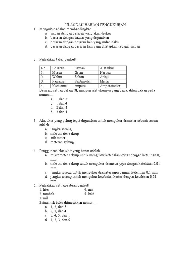 Alat untuk mengukur suhu adalah a termometer b mikrometer c dinamometer d jangka sorong. Jangka sorong vernier caliper adalah suatu alat ukur panjang yang dapat digunakan untuk mengukur panjang suatu benda dengan ketelitian hingga 0 1 mm. Skala terkecil pada jangka sorong adalah pengurangan panjang 1 skala utama 1 mm dengan 1 skala nonius 0 9 mm sehingga didapat nilai 0 1 mm sebagai skala terkecil jangka sorong. Jangka sorong memiliki bentuk yang unik yang bagian bagiannya terdiri atas rahang tetap rahang. Tabung a berisi alkohol dan dihubungkan dengan tabung b yang juga berisi alkohol melalui pipa u yang berisi raksa.