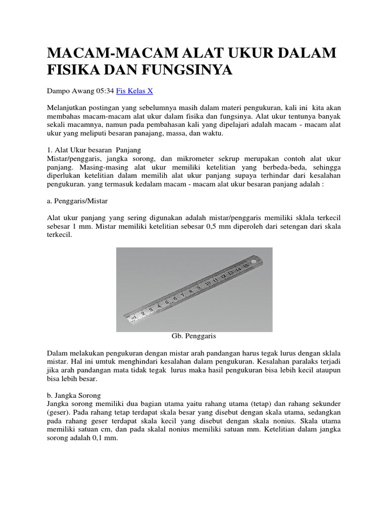 Alat untuk untuk mengukur besarnya suhu suatu benda adalah termometer. Prinsip kerja termometer ada beragam ragam yang paling umum dipakai adalah termometer air raksa. Termometer six bellaini memiliki 2 skala yakni. Mikrometer sekrup atau dalam bahasa asing disebut micrometer screw gauge adalah alat yang digunakan untuk mengukur besaran panjang yang terdiri atas poros tetap yang berperan sebagai skala utama dan poros putar yang berperan sebagai skala nonius tingkat ketelitian mikrometer sekrup ini mencapi 0 01 mm dan mampu mengukur ketebalan atau diameter benda yang sangat kecil dengan presisi dengan.