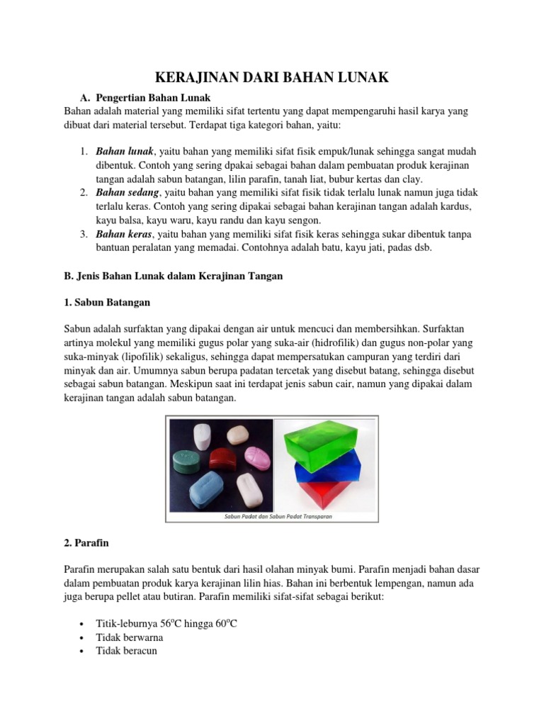 Adalah jenis bahan yang dibuat untuk karya kerajinan yang diolah kembali. Bahan lunak dibedakan menjadi dua berdasarkan sumbernya yaitu. Bahan lunak buatan dari alam d. Alat yang digunakan untuk mengukir bahan.
