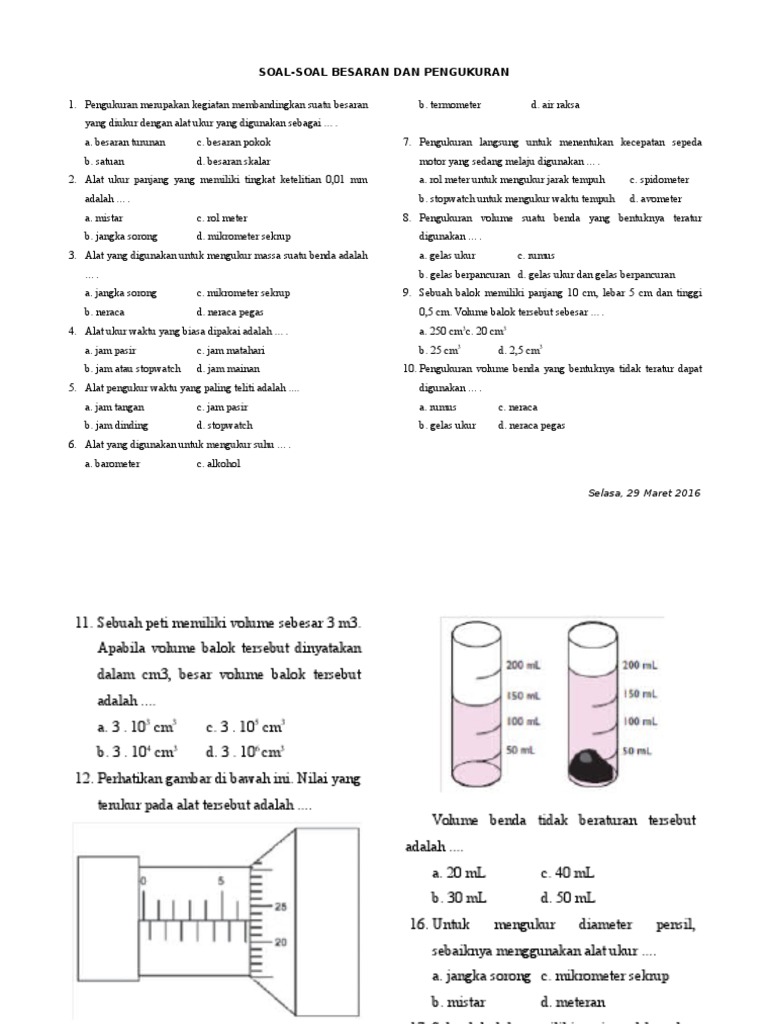 Jangka sorong vernier caliper adalah suatu alat ukur panjang yang dapat digunakan untuk mengukur panjang suatu benda dengan ketelitian hingga 0 1 mm. Cara untuk mengukur massa sebuah benda adalah dengan menggunakan alat pengukur massa. Penemu jangka sorong adalah seorang ahli teknik berkebangsaan prancis pierre vernier. Mistar adalah alat ukur yang digunakan untuk mengukur panjang serta untuk membantu seseorang menggambar sesuatu guna menghasilkan garis lurus.