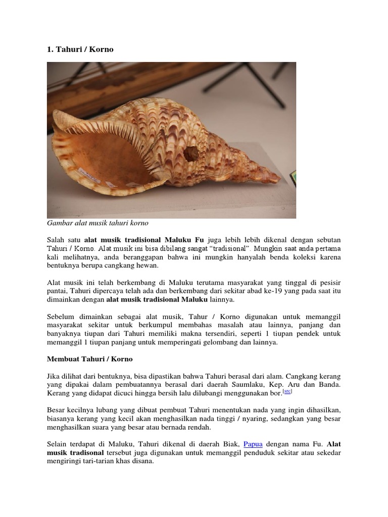 Mungkin anda pertama kali melihatnya anda akan berpendapat bahwa ini adalah benda koleksi yang bentuknya seperti cangkang hewan. Alat musik tradisional melihat begitu banyaknya alat musik tradisional yang ada di indonesia bisa disimpulkan bahwa negara ini kaya akan kebudayaannyabukan hanya alat musik di setiap daerah bisanya juga mempunyai lagu daerah pakaian adat dan. Fu berasal dari maluku utara yang mempunyai jenis bunyi aerofon. Alat musik ini berasal dari maluku utara.