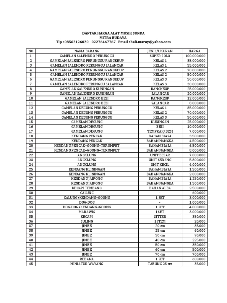 Harga alat musik sunda. Cara memainkannya dengan menbolak balikan bagian atas dan bawahnya. Tetapi pada angklung dimainkan dengan digoyangkan sedangkan calung dimainkan dengan di tabuh pada bagian ruas ruasnya. Jumlah pcs keranjang 081222798117. Harga gamelan alat musik kubro jawa.